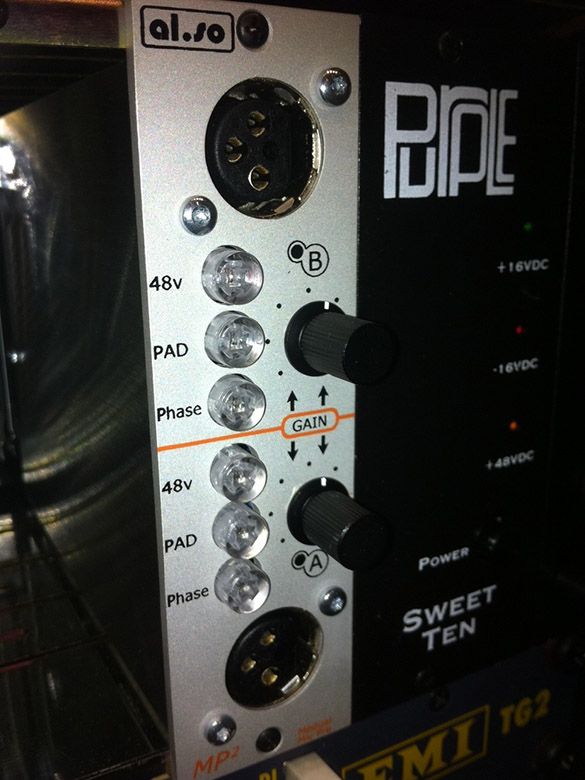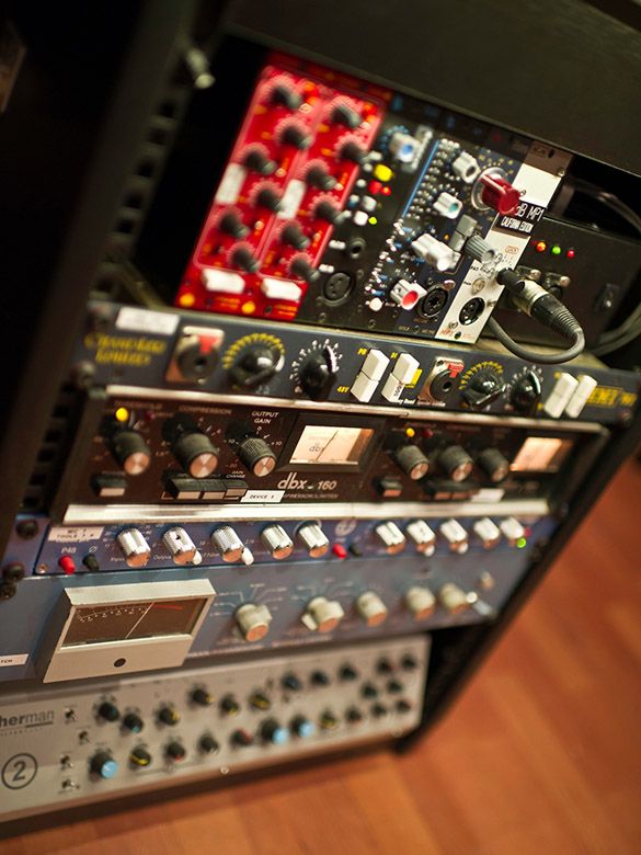 8 preamps (Neve, Api, Chandler..), Manley stereo Vari-Mu, SSL G Mynx stereo buss compressor.