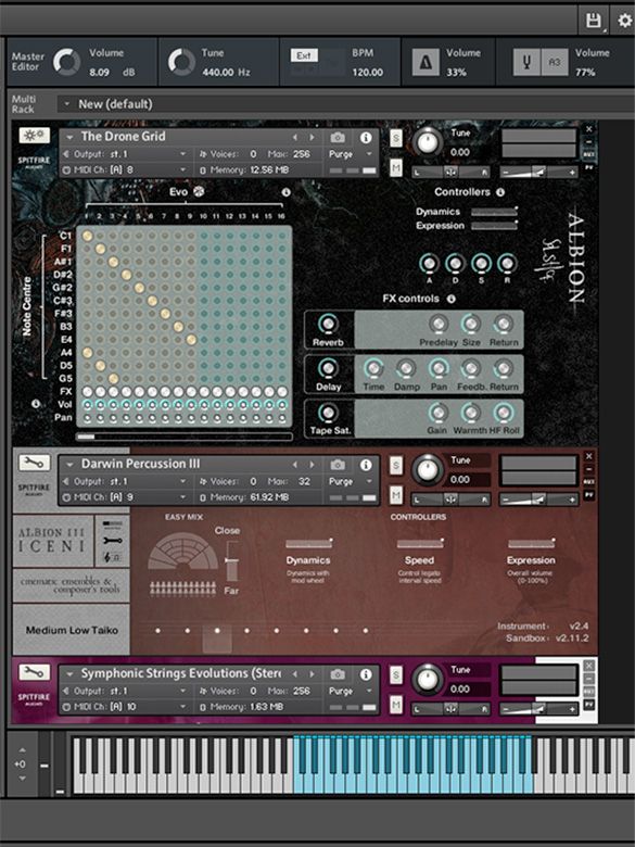 11 sound bank hard drives. M905 Grace, Komplete Kontrol master keyboard.