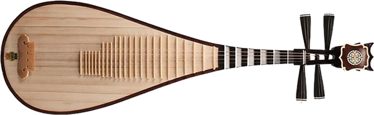 The modern pipa is 40 inches (102 cm) long. The strings are tuned to A, d, e, a, low to high and the range is three octaves plus four pitches. Once made of silk, strings are now usually made of nylon-wrapped steel. Players use their fingers adorned with artificial nails, to pluck the strings. The contemporary pipa’s direct ancestor is the quxiang (“curved-neck”) pipa, which traveled from Persia by way of the Silk Route and reached western China by the 4th century AD. This type of instrument was introduced to Asian countries such as Korea where it is known as the Bipa, in Japan as the Biwa and in Vietnam as the Tyba. The Pipa is held upright on the player’s thigh. Techniques combine both nails and flesh contact, producing a wide range of tones. Pipa players use various ornamentation techniques, such as slides, tremolos, vibrato, harmonics and finger techniques, to add expression and nuance to the music. The pipa shares some playing techniques with the guzheng (a Chinese zither), such as the use of tremolo and glissando, which enhances its expressive capabilities. When I said the Pipa could be a challenge for guitar players… it can be played with a guitar pick and held like a guitar, but then you would miss the essence of the pipa and it would sound a little like a banjo. The transition from guitar to pipa is not exactly easy, but if you’re tempted, prepare yourself to spend enough time to master the instrument’s specific techniques!
